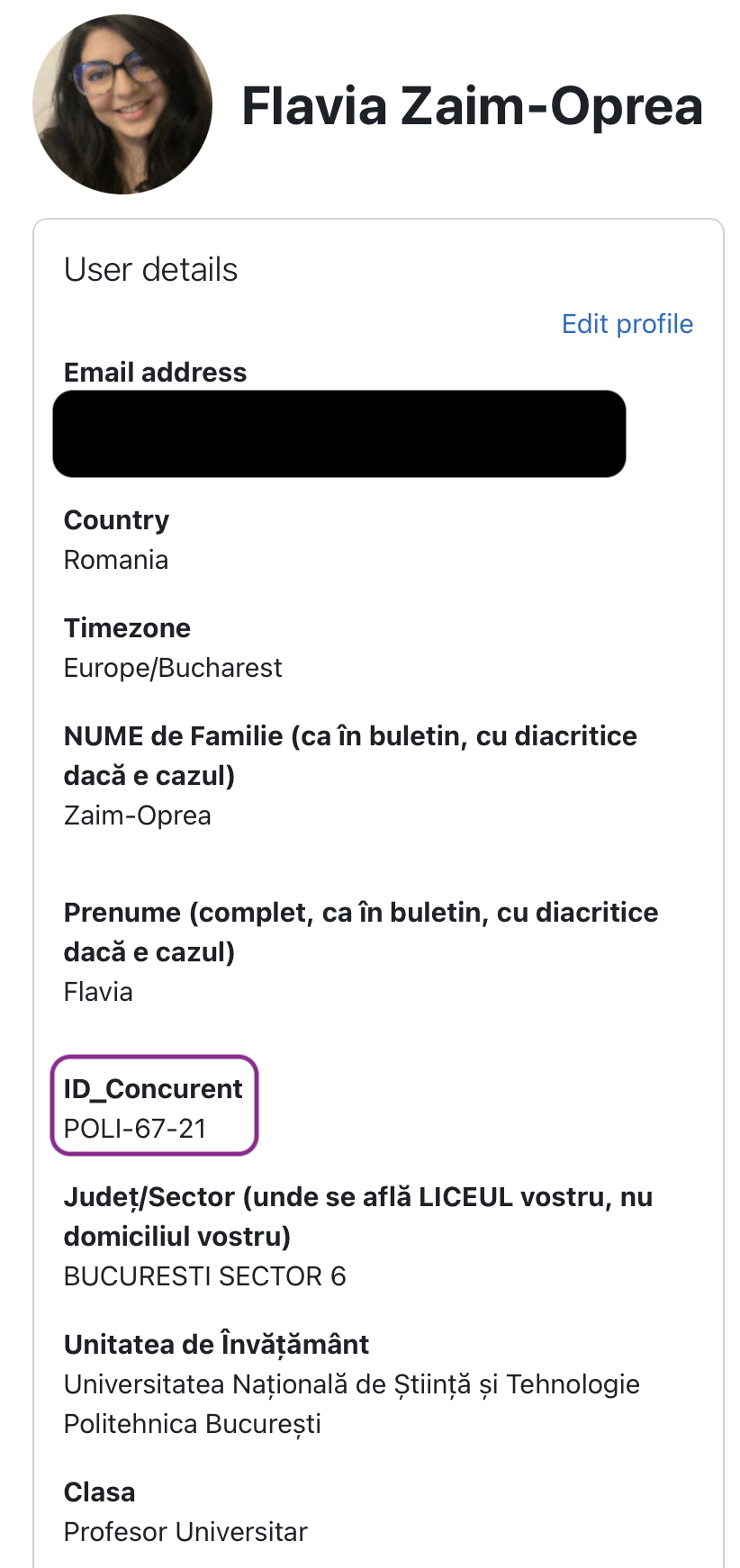 În profilul vostru de utilizator a fost adăugat un câmp nou: ID Concurent.